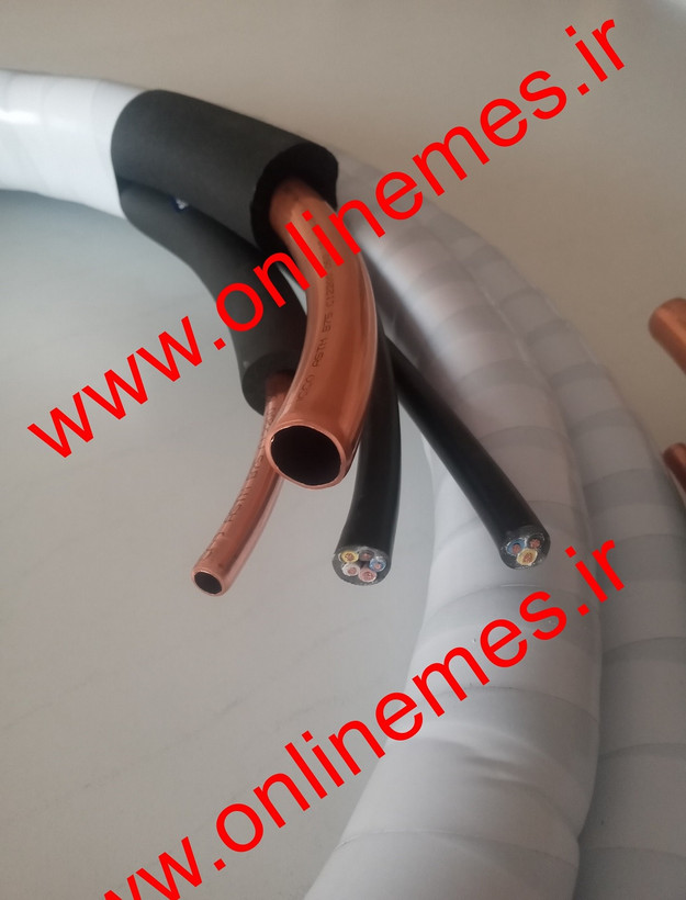 لوله مسی کولر گازی های 12 هزار و کولر گازی های 9 هزار به همراه کابل 5 رشته هادی نور و نوار پرایمر آماده شده جهت استفاده و نصب